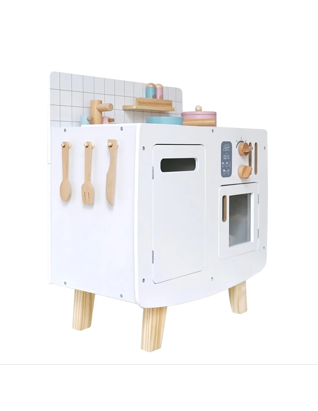 - Título optimizado: Cocina de Madera Blanca con Accesorios – Juego de Juguetes de Cocina 63x30x56 cm – Krishna LB00129