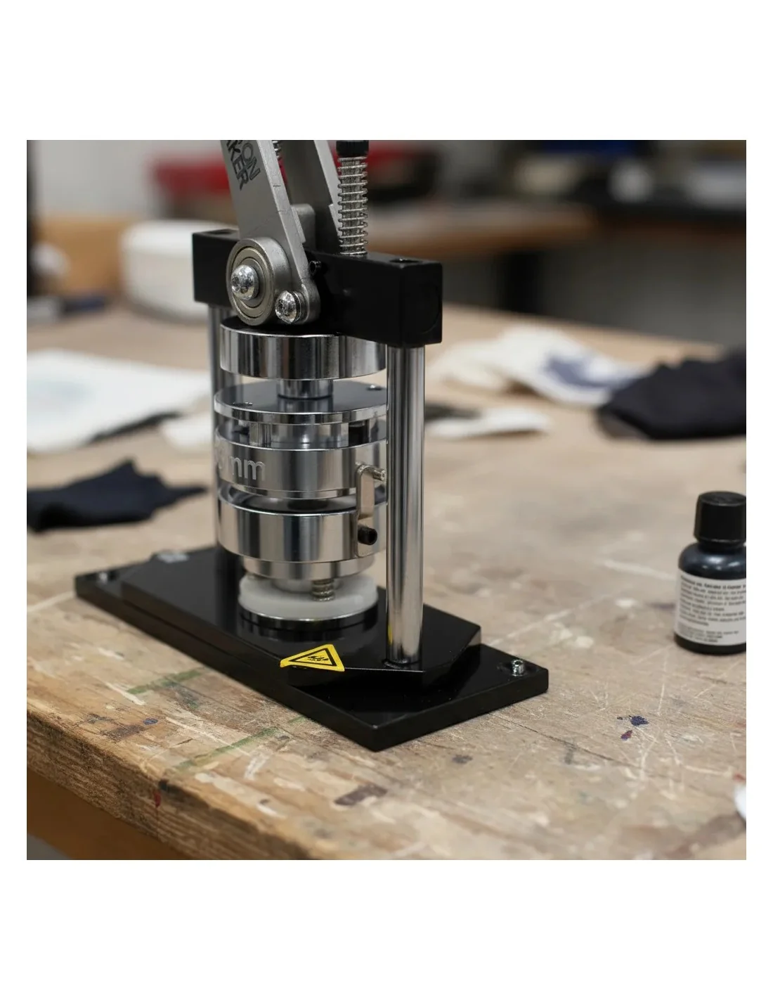 La máquina estampadora de chapitas con matriz de 56 mm está diseñada para fabricar chapitas redondas de 56 mm (2.2 pulgadas) mediante un proceso de estampado, buscando producción estable, repetible y de alta calidad para promocionales, clubs, eventos y proyectos artesanales.