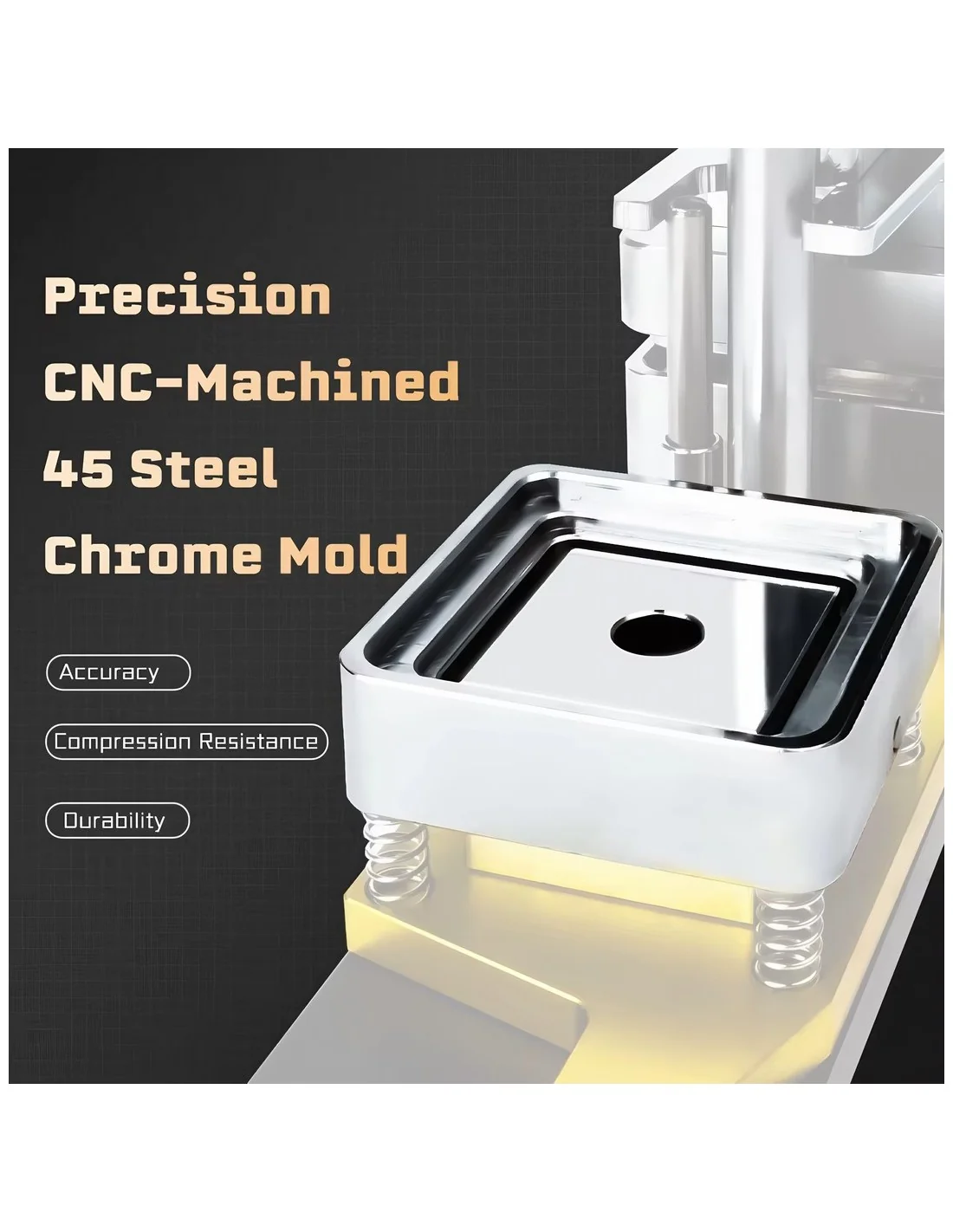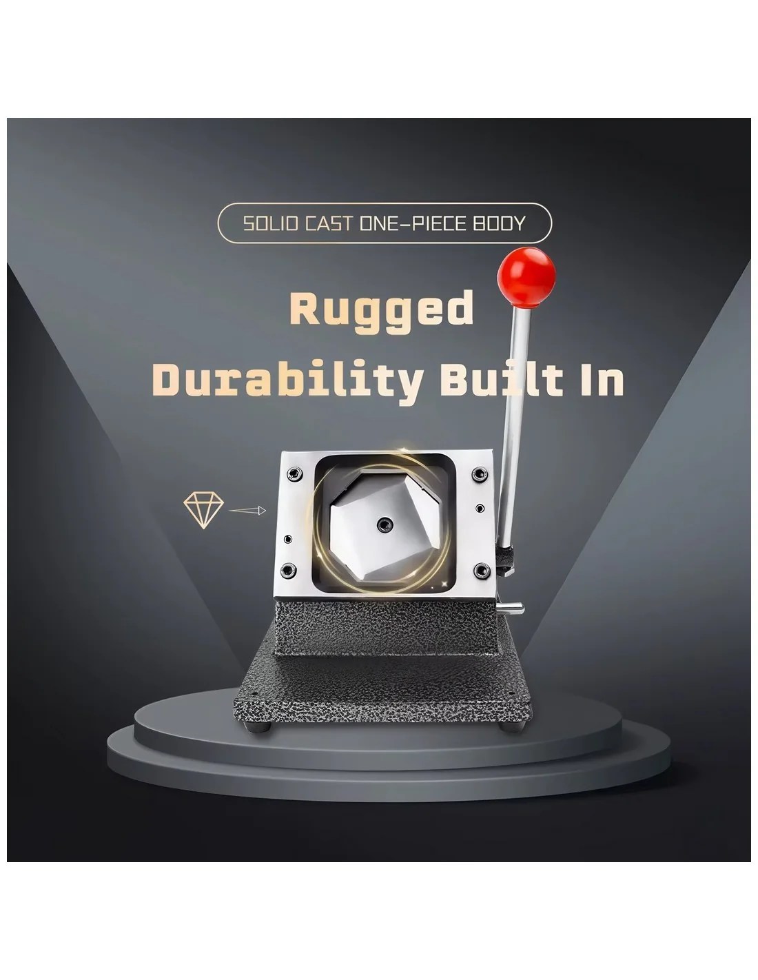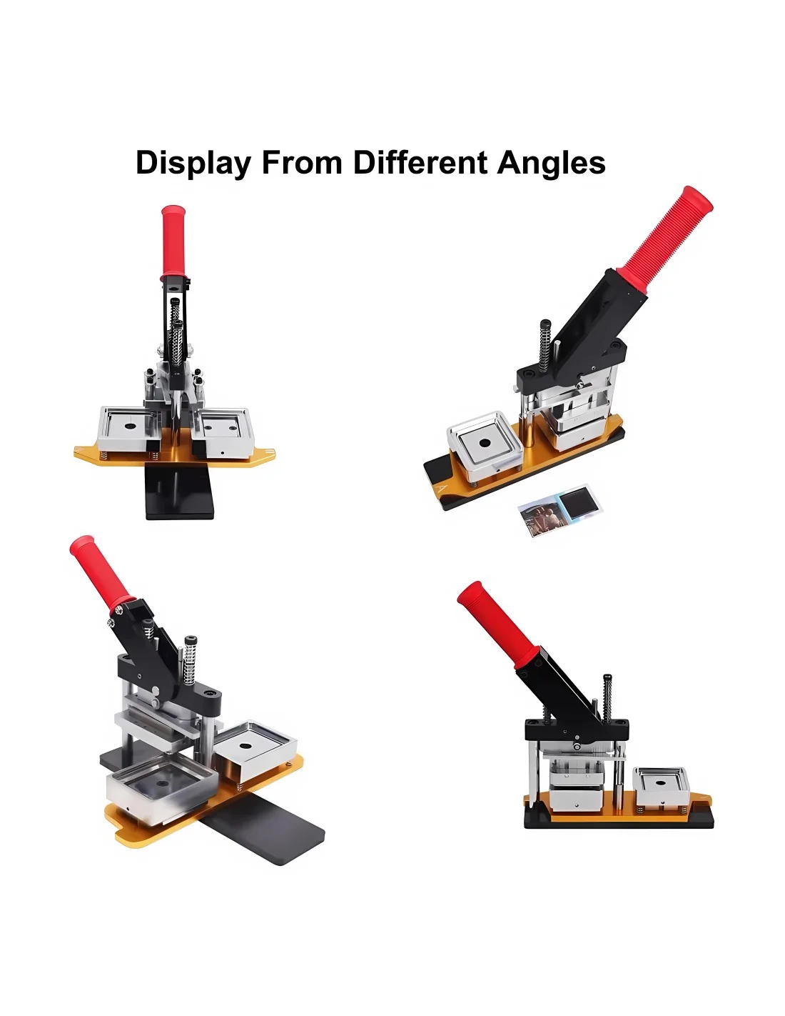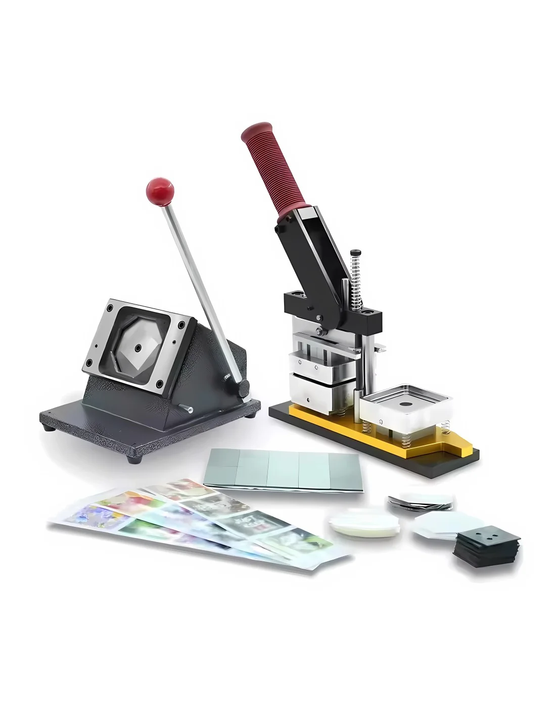 Esta prensa para imanes de 5 × 5 cm es un kit de bricolaje pensado para emprendedores y amantes de las manualidades. Consiste en una prensa manual con un cuerpo metálico robusto y una palanca de accionamiento ergonómica. La estructura se asienta sobre una base estable; el sistema de troqueles intercambiables permite colocar los distintos componentes y ejercer presión de forma uniforme. No requiere instalación ni energía eléctrica: basta con situar los materiales en el troquel, accionar la palanca y retirar el imán listo.