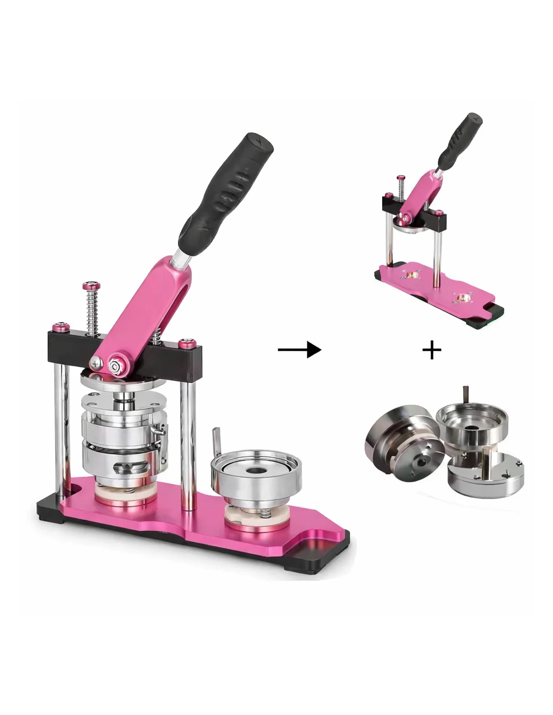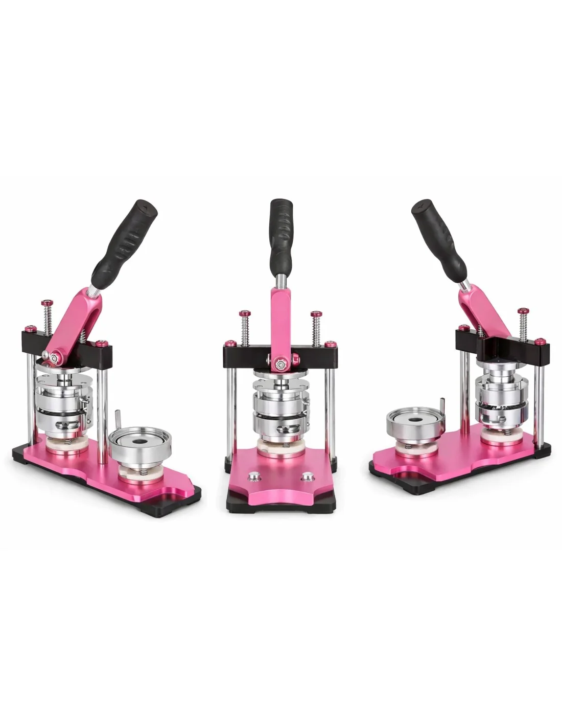 La máquina de chapitas de 58 mm está orientada a la producción de chapas grandes (3 pulgadas), ideales para exhibición, campañas políticas o merchandising premium. Combina estructura robusta con precisión mecánica para producción profesional.